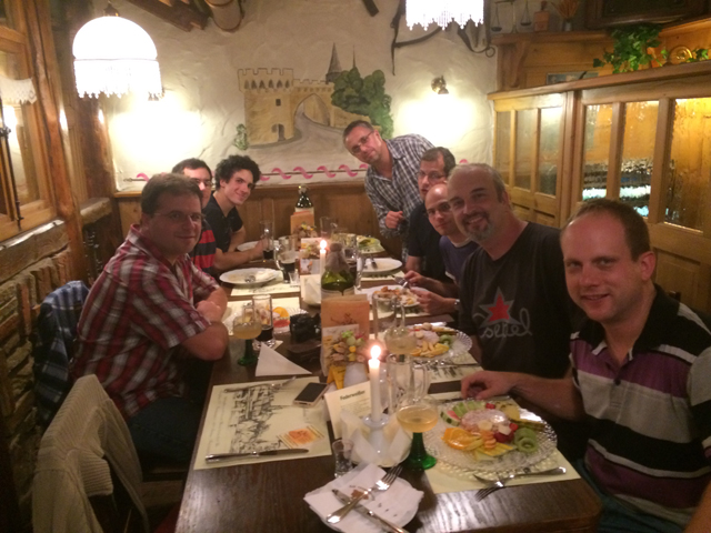 A nap vége. közös pezsgőzés a kiállítókkal. És itt hangzott el, hogy jövőre