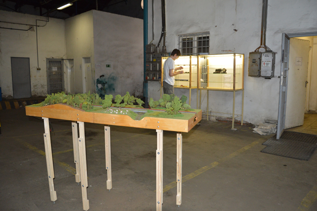 hátteret, mégis jól nézett ki a működő modul a leharcolt javító csarnokban.